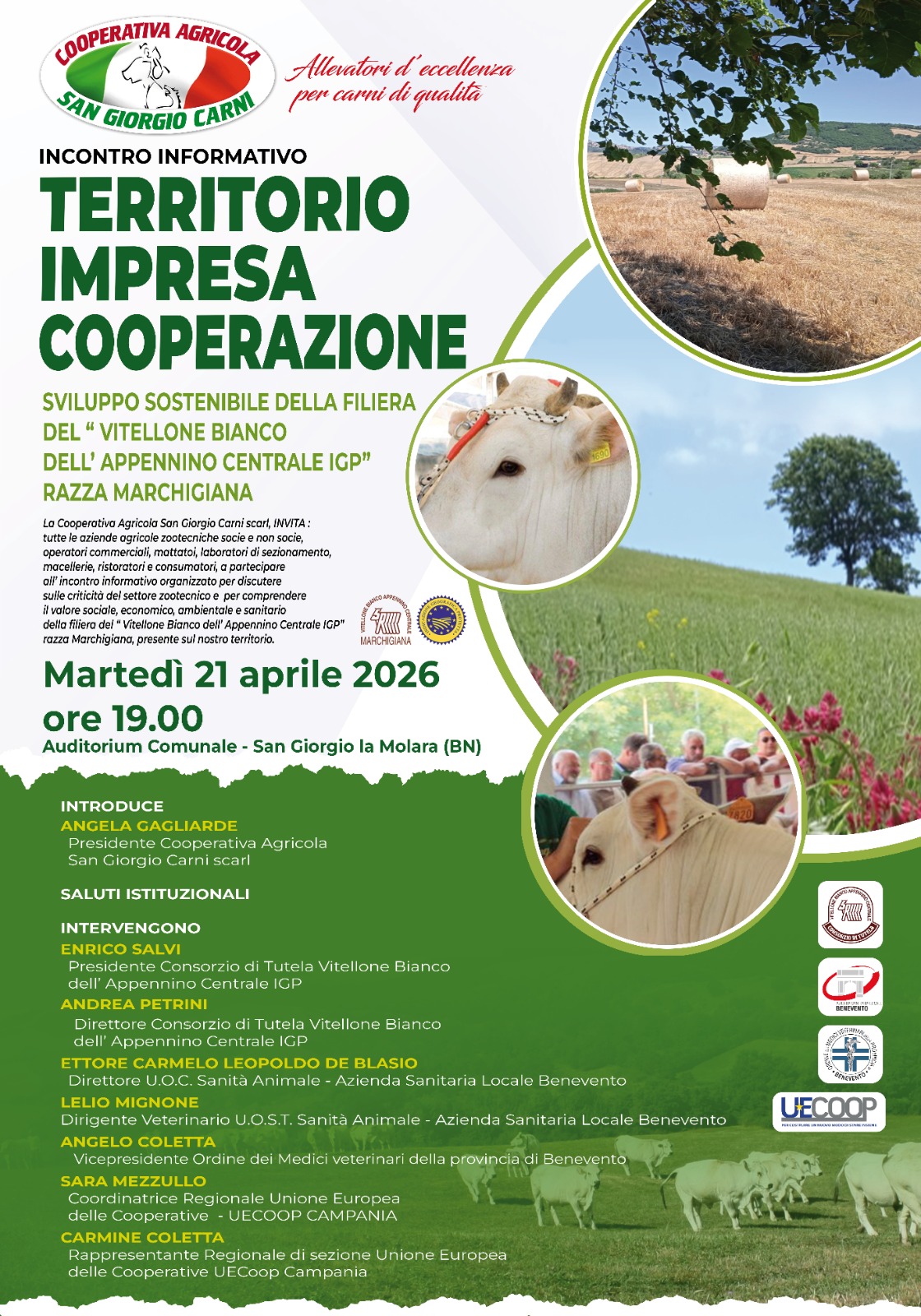 Il nuovo Consiglio di Amministrazione della Cooperativa Agricola San Giorgio Carni scarl, eletto all’ unanimità dall’Assemblea Ordinaria dei Soci riunitasi in seconda convocazione nelle scorse settimane, presso la sede in via campanile 9, in San Giorgio la Molara, ha voluto segnare una svolta storica nella governance della San Giorgio Carni scarl e nel settore zootecnico sannita.
